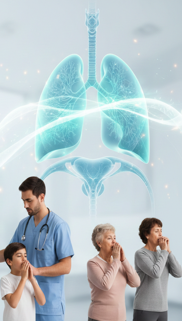 Atención de Kinesiología Respiratoria realizada por profesionales especializados. Evaluamos y tratamos directamente en tu hogar para mejorar la función pulmonar, eliminar secreciones, disminuir la disnea y acelerar la recuperación, tanto en enfermedades respiratorias agudas como crónicas, en niños, adultos y adultos mayores.